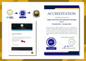 LOGOS UNIVERSITY INTERNATIONAL – UNILOGOS® é um estabelecimento de ensino superior privado, autorizado pelo Ministério Francês da Educação Nacional, Ensino Superior, Pesquisa e Inovação, em conformidade com a Lei da Educação Francesa: Code de l’Éducation (Artigos L 444-1 a 444-11 e R 444-1 a 444-28).