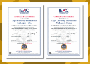 A Logos University International (UniLogos) possui credenciamento internacional concedido pelo International Education Accreditation Council (IEAC), atestando a excelência de suas áreas de operação.