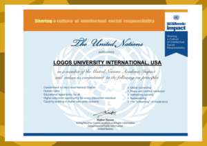 Além deste importante passo com o Departamento de Educação, a LUI – Logos University International (UniLogos) obteve aprovação no programa de Impacto Acadêmico das Nações Unidas (UN) no ano de 2015.