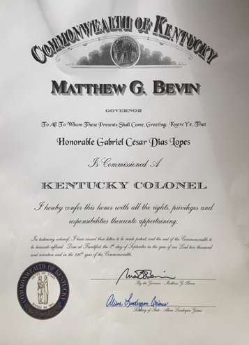 O Ilustre Reitor Dr. Gabriel César Dias Lopes recebeu em 5 de setembro do ano de 2017 a Grande Honra “O Coronel do Kentucky”. É a maior honra concedida pela Comunidade do Kentucky. Comissões para os coronéis de Kentucky são dadas pelo governador e pelo secretário de Estado para indivíduos em reconhecimento de realizações notáveis e serviço excepcional para uma comunidade, estado ou nação. O governador da Commonwealth de Kentucky concede a honra de uma comissão do coronel, emitindo cartas. Toda a honra e toda a glória é dada ao Senhor nosso Deus! Para todos os que sempre encorajaram, confiaram e comprometeram a nossa jornada, meus mais sinceros agradecimentos